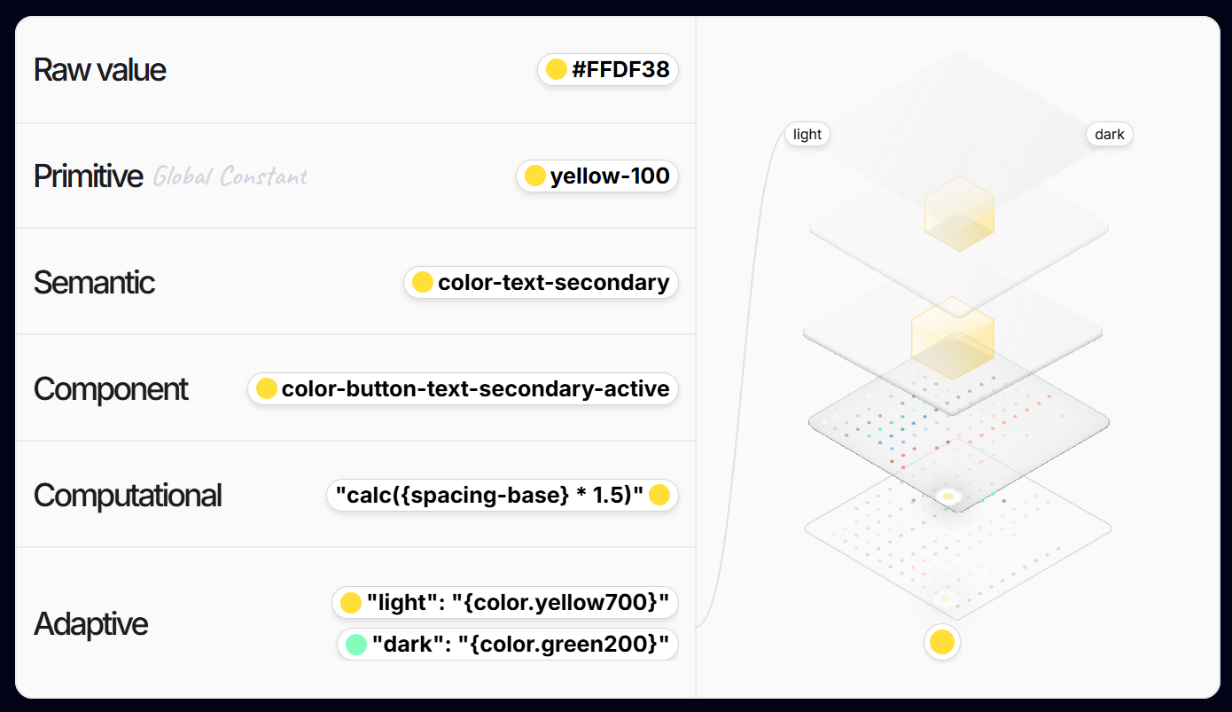 We avoid semantic naming at this stage. Since this is the first design system built specifically for UX writers in our team, we treated our naming as raw values, a foundational layer. This leaves room for more advanced structures later, such as semantic or adaptive naming (as seen in established design system principles).