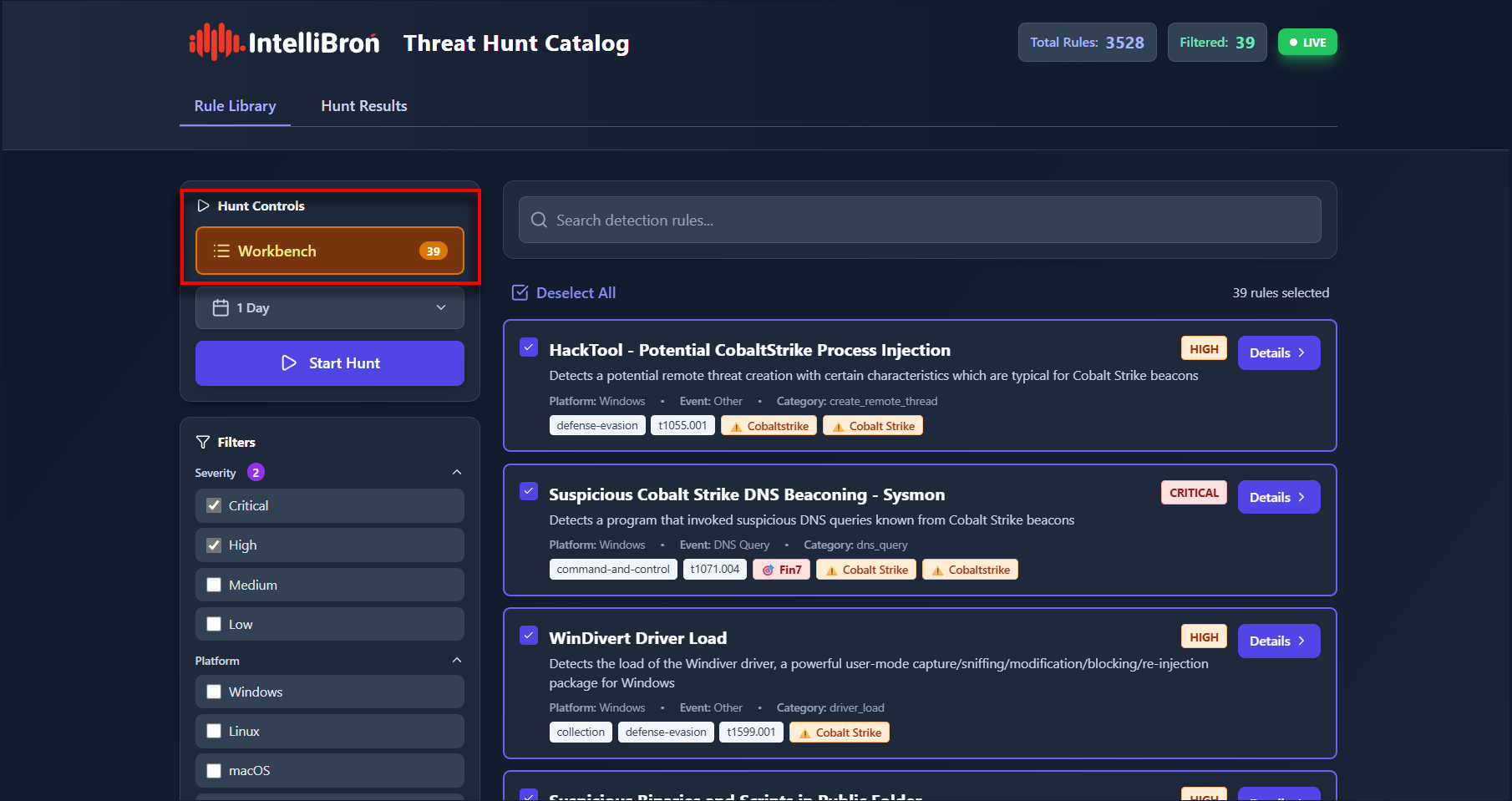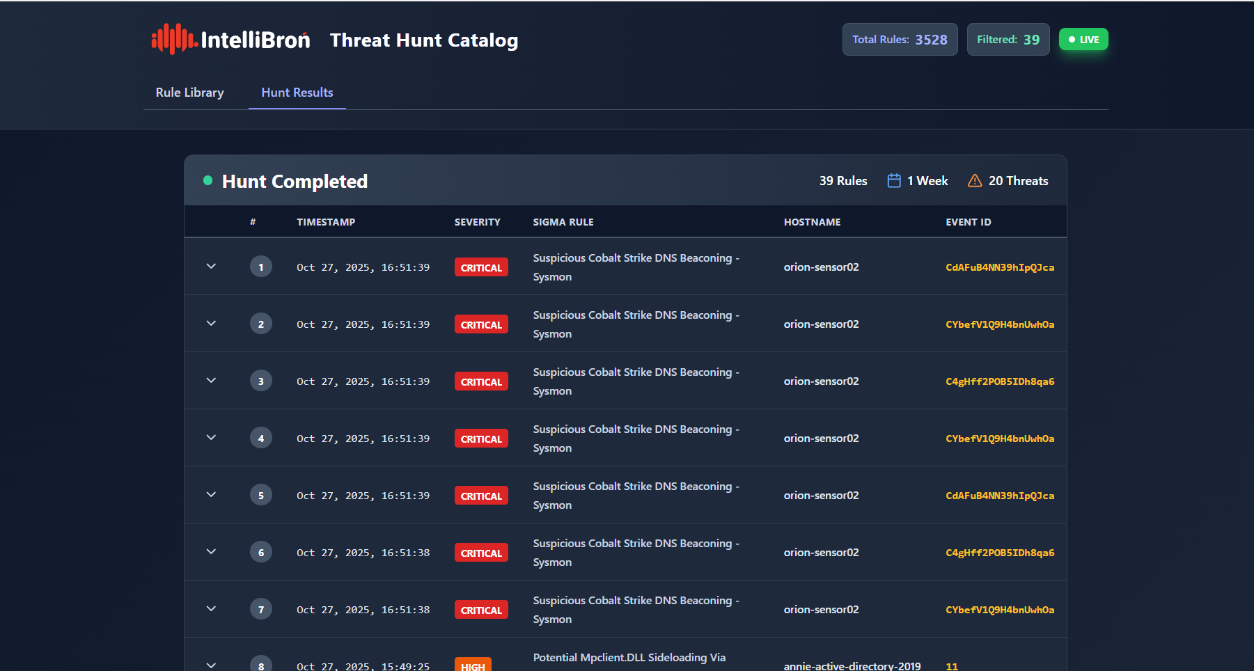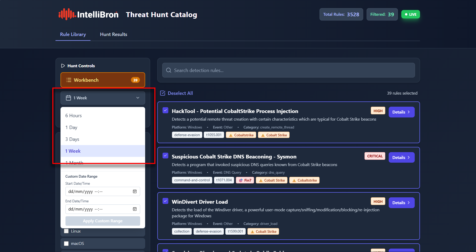 - Launch the Hunt: You can set the search window to the "Last 1 Week"