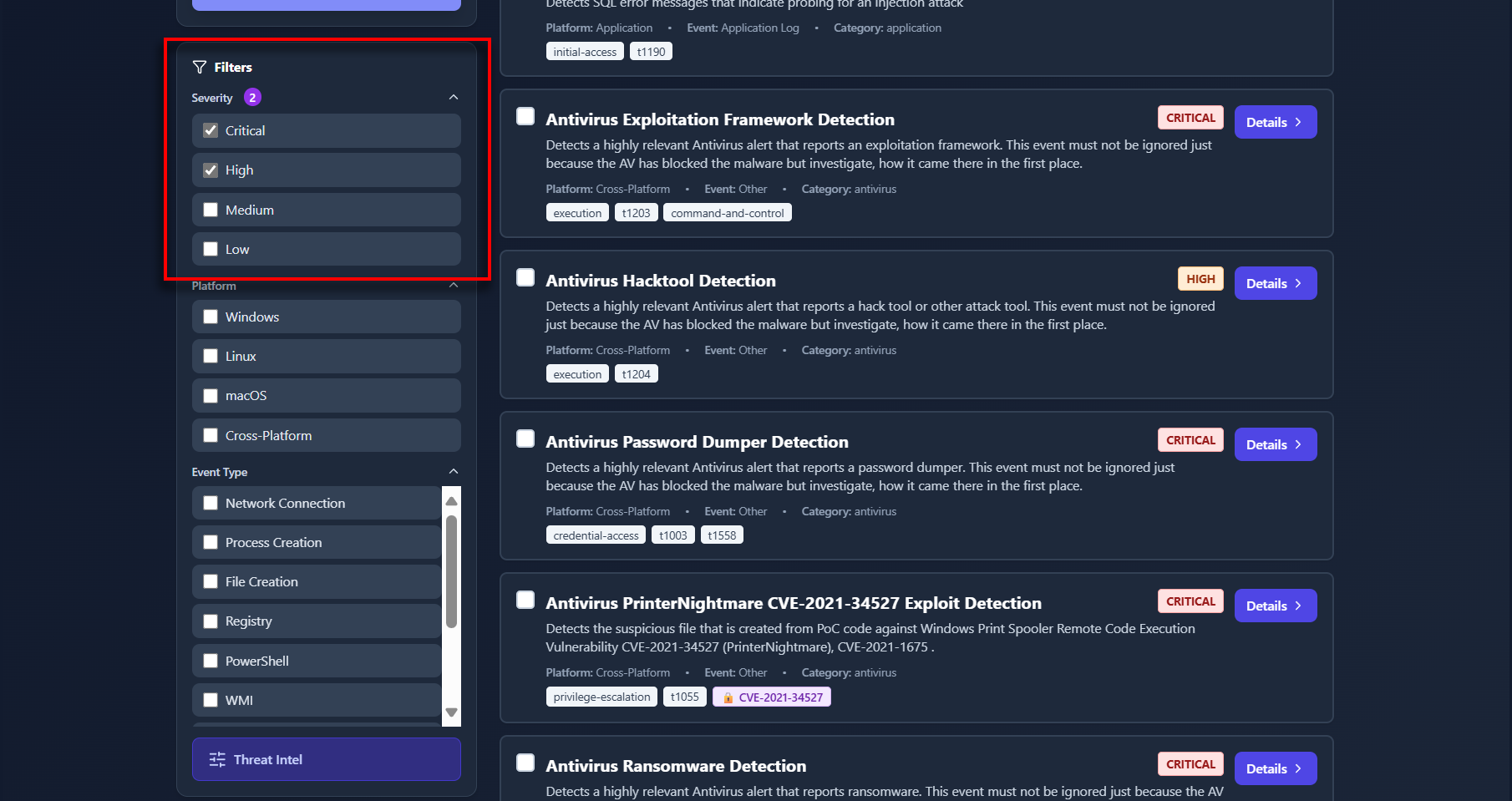 We hope this platform helps you be fast and accurate by making Sigma easy to use every day. By handling tedious part of threat hunting so you and your team can focus on what humans do best: analysis and investigation.